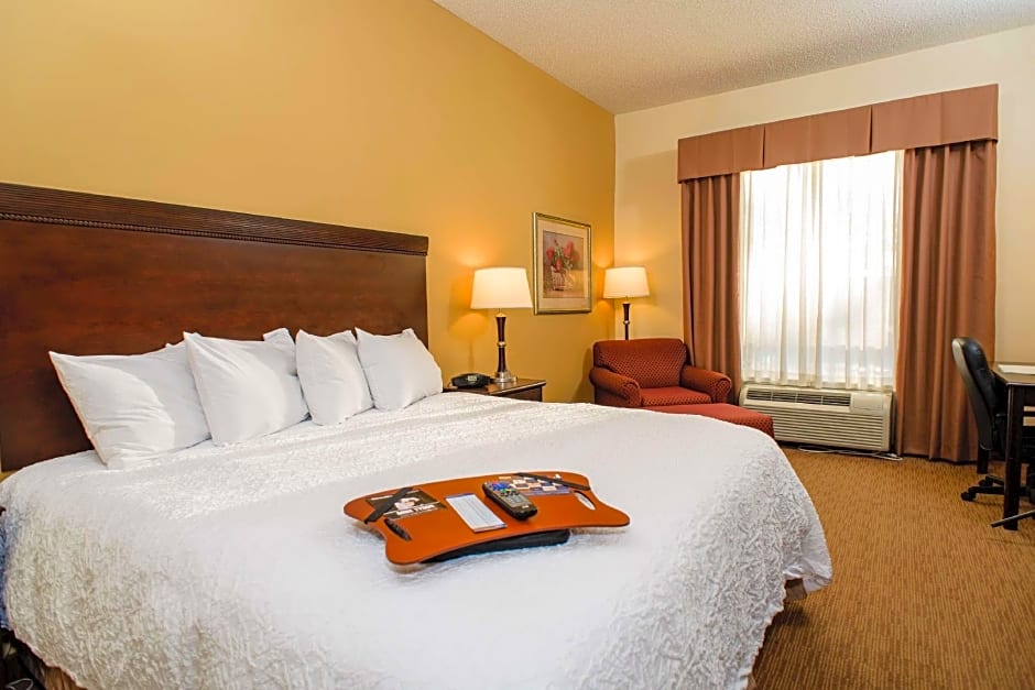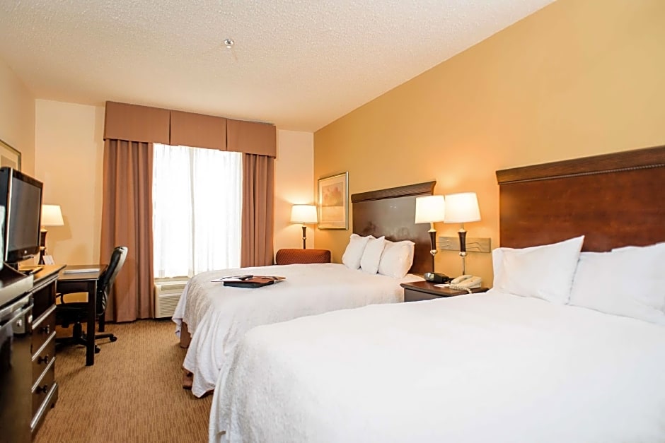 LCD HDTV, work desk, coffeemaker, free WiFi, refrigerator, microwave Experience a restful night in this comfortable room with a clean and fresh Hampton bed®. Curl up in the cozy easy chair with an ottoman and watch a movie on the LCD TV with HD channels. This room features a large work desk and free WiFi to allow you to keep on top of business. The bathroom contains plush towels and a shower with a curved shower rod, offering more space and light. Enjoy the convenience of a coffeemaker, a microwave and a refrigerator in this room.