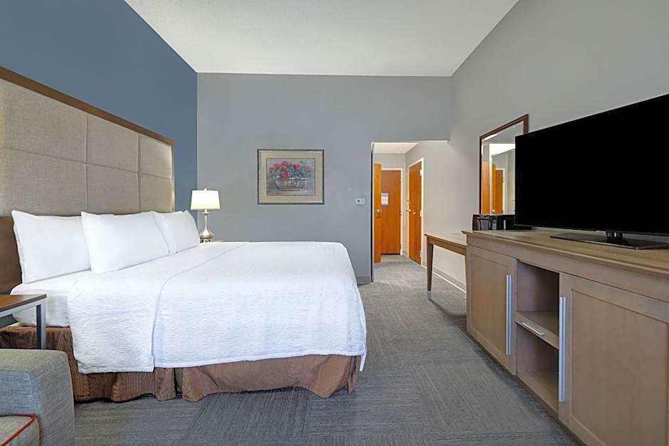 This hearing accessible, non-smoking one room studio suite features one king-sized bed. The room also has a visual alarm and notification devices for the doorbell or door knock and incoming phone calls. The room features our luxurious Clean and Fresh Hampton Bed, comfortable sofa bed, microwave, refrigerator, wet bar, a HDTV, and easy to operate alarm clock/radio. In the bath you will enjoy a WaterPik shower head and curved shower rod. The free high speed internet access will help you stay connected while on the road. If you prefer not to work at the desk, you can use the convenient lap desk instead. You'll also enjoy the convenience of having a coffeemaker with tea service and iron/ironing board in your room. Any corresponding photo may not reflect the specific accessible room type or room feature.