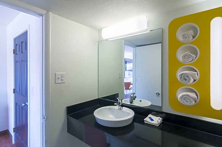 very friendly front desk staff. clean room with just the right furniture. great area to take out the dog and it was clean with pickup bags available. I loved being a short walk from a 7-11.