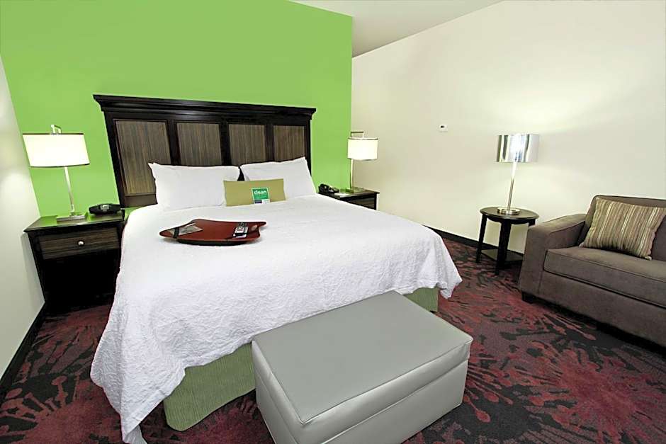 The Hampton Inn & Suites Winnie offers a variety of room types. They have King Studio rooms with a sofa bed, Queen rooms with two queen beds (some with a bathtub), King rooms, and King rooms with a bath. All rooms are non-smoking and have different occupancy capacities, ranging from 2 adults to 5 adults and various numbers of children. The room sizes are all 334 sqft.