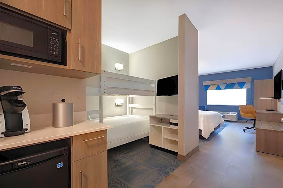 The Holiday Inn Express Hotel & Suites Moab offers a variety of rooms, including family studio suites, king suites with mobility accessible tubs, queen rooms with two queen beds, king rooms, twin double rooms selected at check-in, hearing accessible king rooms, queen suites, executive king suites, king rooms with hearing and mobility accessibility, family suites, and king suites. The rooms vary in size from 355 sqft to 366 sqft. None of the rooms allow smoking. The rooms can accommodate between 2 to 8 adults and have various bed configurations, including queen size, king size, and sofa beds.