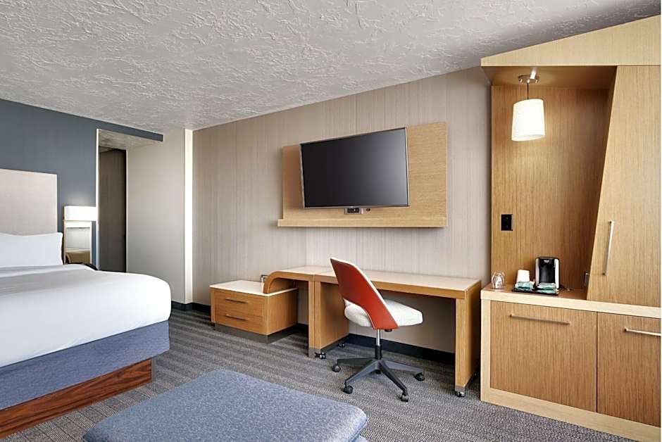 The Courtyard by Marriott Ogden offers a variety of room types including King Rooms, Queen Rooms with Two Queen Beds, One-Bedroom Suites, King Rooms with Sofa Bed and Adapted Tub, King Rooms with Sofa Bed and Hearing Accessible, and Large King Studios. All rooms are non-smoking and can accommodate between 3 adults and 2 children to 4 adults and 3 children depending on the room type. The bed sizes range from King size beds to a combination of King size beds and sofa beds.
