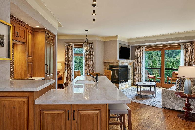 On-site dining options include Rime Seafood and Steak (American), Brasserie 7452 (French), and La Stellina (Italian), offering a menu that spans seafood and steak, classic French fare, and homestyle Italian dishes. The on-site spa invites a restorative break with Turkish and steam baths and pampering massages. For recreation, an outdoor pool awaits throughout the year, a golf course is within reach, and on-site skiing keeps the mountain spirit alive.