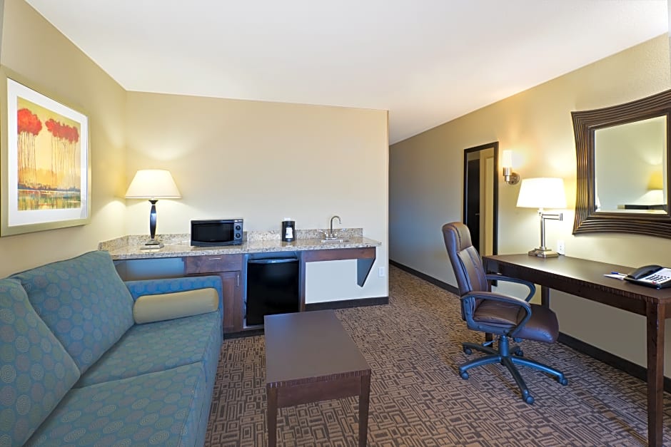 The types of rooms available at the Holiday Inn Express Richfield, an IHG Hotel include King Rooms with Bath Tub - Disability Access/Non-Smoking, Deluxe Queen Suites with Hearing Accessible Tub - Non-Smoking, King Rooms with Sofa Bed - Non-Smoking, Queen Rooms with Two Queen Beds - Non-Smoking, Suites with Mobility Accessible Tub - Non-Smoking, Executive Queen Rooms with Two Queen Beds - Non-Smoking, and Rooms with Two Beds - Hearing Accessible - Non-Smoking, among others. The rooms range in size from 301 sqft to 355 sqft, with various occupancy options accommodating between 2 and 6 adults, and 1 to 4 children. All rooms are non-smoking and have either King-sized or Queen-sized beds.