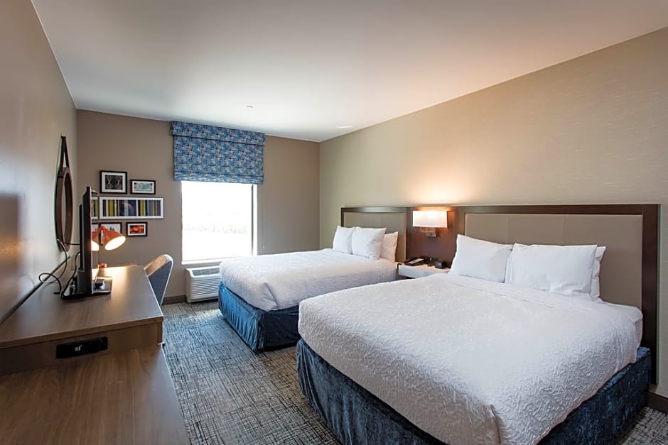 At the Hampton Inn & Suites St. George, the hotel offers several types of rooms. These include double rooms with two queen beds, king rooms, king studio suites, queen rooms with two queen beds, and executive king rooms. All rooms are non-smoking and have a size of 334 sqft. The occupancy ranges from 2 adults and 1 child to 4 adults and 3 children, depending on the room type.