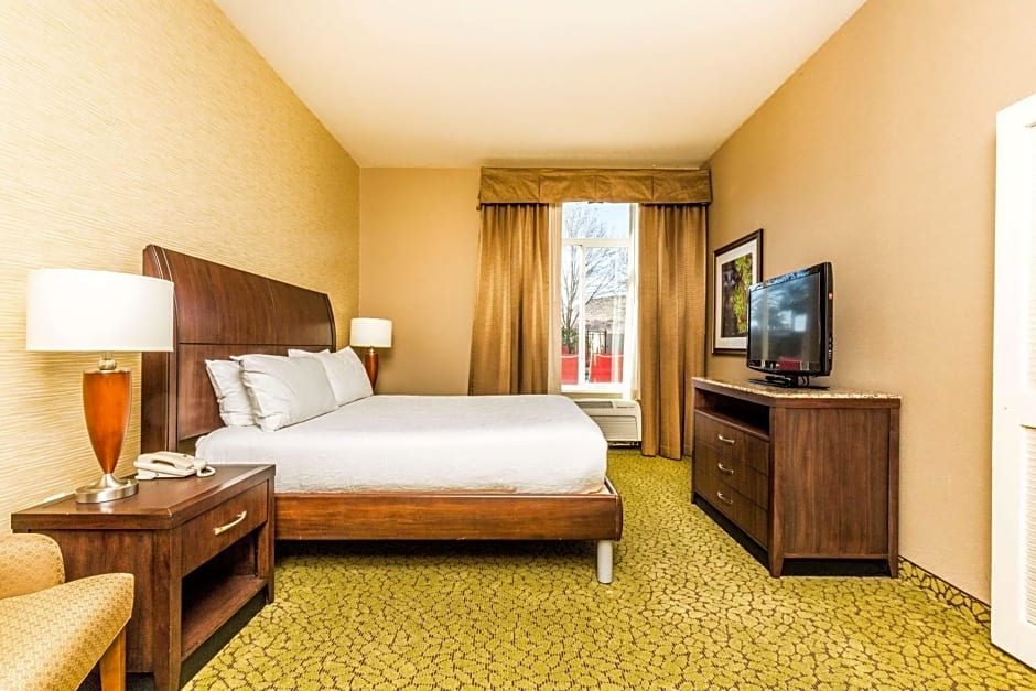 This Suite features a king-sized bed, one bedroom 1 bathroom with whirlpool bathtub & separate walk-in shower, 1/2 bathroom in separate room, Complimentary WiFi, HDTV in each room, desk and ergonomic chair, and sofa bed.