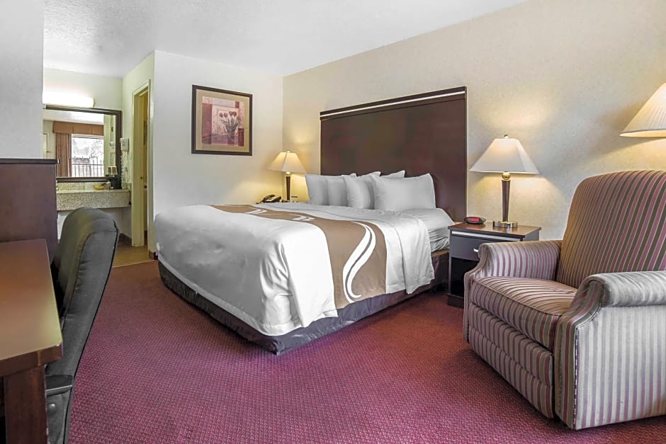 The Quality Inn Saint George South Bluff hotel offers a variety of room types including Superior King Rooms and Standard Queen Rooms with Two Queen Beds. All rooms are non-smoking and accommodate either 2 adults and 1 child or 4 adults and 3 children. The bed sizes vary with options of 1 King size bed or 2 Queen size beds. Room sizes range from 301 sqft to 334 sqft.