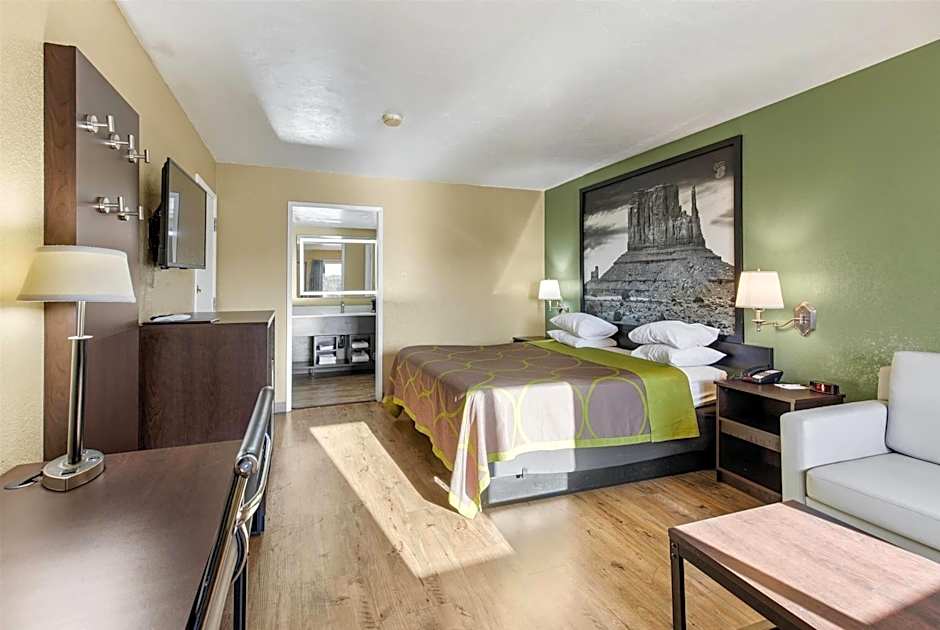 The Super 8 by Wyndham St. George UT offers a variety of room types including King Rooms, Queen Suites, King Suites with Spa Baths, Deluxe Queen Suites with Three Queen Beds, Queen Rooms with Two Queen Beds, and King Rooms. All rooms are non-smoking and have different bed sizes ranging from queen to double beds. Occupancy varies with accommodations for 3 to 6 adults and 2 to 4 children.