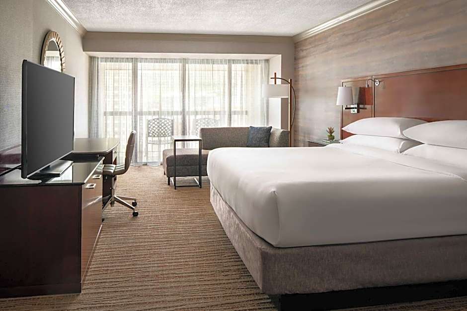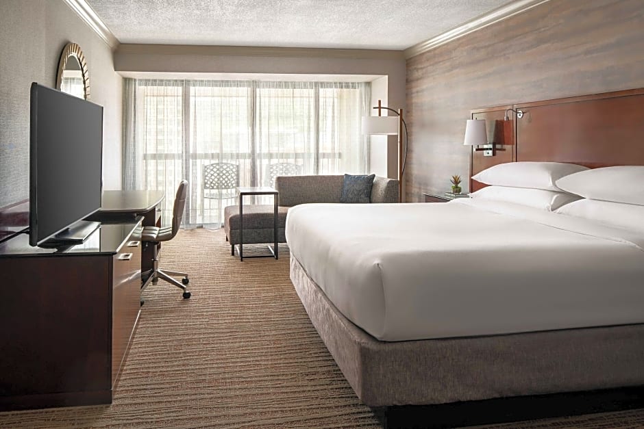 The hotel offers a variety of room types including Deluxe Guest rooms with 1 King bed, Larger Guest rooms with 1 King bed (corner room), Executive High Floor rooms with 1 King bed and balcony, Deluxe Guest rooms with 2 Queen beds, Guest rooms with 1 King bed and a view, and Guest rooms with 2 Queen beds and a view. All rooms are non-smoking and have a size of 323 square feet. The occupancy ranges from 3 adults and 2 children to 4 adults and 3 children.