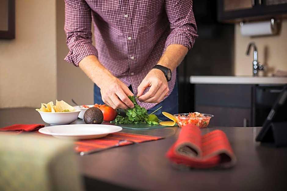 The hotel offers Queen Studio Suites, One-Bedroom Queen Suites, and Queen Studio Suites with either a roll-in shower or a bathtub. Smoking is not allowed in any of the rooms. The rooms accommodate either 2 adults and 1 child or 3 adults and 2 children. All rooms have one Queen size bed, and the One-Bedroom Queen Suite also includes a sofa bed. Room sizes range from 355 sqft to 474 sqft.