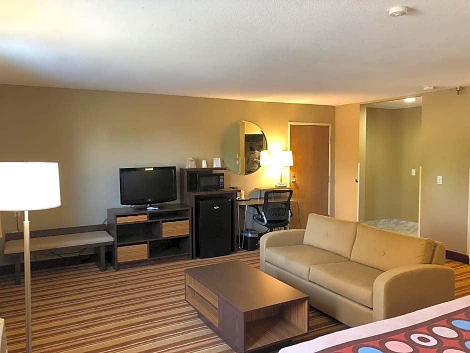 The size of the room & what you get in your room - A desk & a nice office chair, A bench, coffee maker, A microwave, A fridge, A nice TV, A small area to hang clothes, An iron and board, A hair dryerMy room & the size, Breakfast, the price. They do welcome pets ☺️. I do have 3 suggestions - an area for couples to sit by a fireplace to enjoy. For the kids I think that Motels & Hotels should have a Play Ground or some kind of play room to keep them busy and happy. Also to offer a dog babysitter to walk them on the motel property only, entertain the pet(s), play with them if the owner wants to do something, go swimming, the gym, just so the dogs don't bark & aren't bored. It also gives the owner & the pets a break from each other.