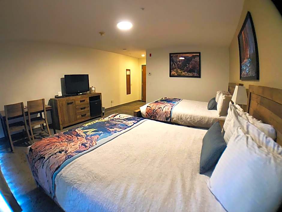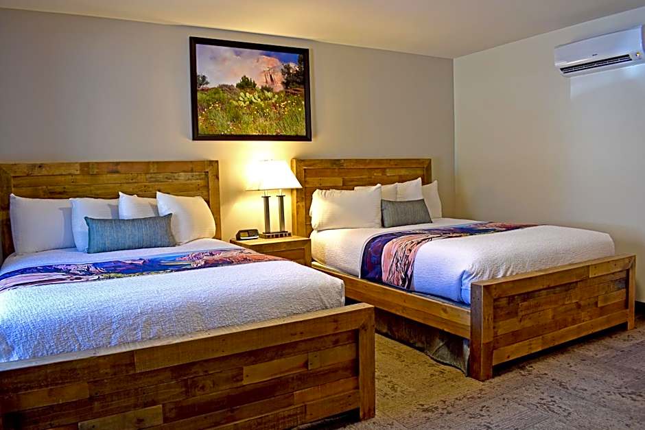 Excellent hotel, well located on the tourist strip outside of Zion National Park. Rooms are well back from the road, so nice and quiet. Swimming pool was lovely, with a lawn outside of the pool area, where we saw deer grazing one day. Breakfast at Porters was excellent and cooked to order. Oscar's cafe (a top rated place to eat on Tripadvisor) is just across the road. And the shuttle bus stop (for Zion) is right outside the hotel.