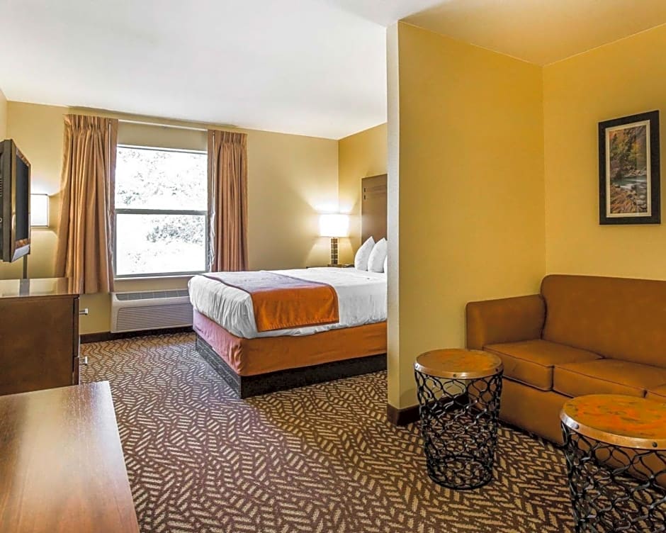Beautifully remodeled room/sink area/shower, great bedding, comfortable bed, refrigerator in room and ice machine nearby a must, really liked the couch in king room for relaxing, great pool and hot tub area, landscaped nicely and all around great feel of property. They’re doing an excellent job improving the property. Contactless checkin was really nice and good correspondence before we arrived. Nice to have the shuttle right out on the street to walk to and leave our car parked at the hotel. Location close enough to food/shopping but not too close.