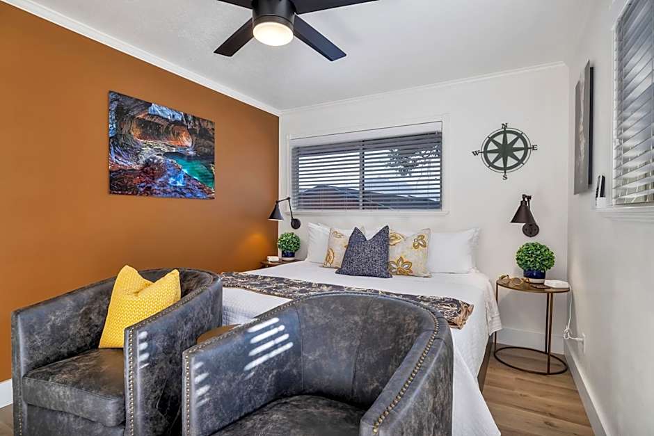 For families or groups, the Gifford Suite or the expansive Angels Landing Suite provides ample space while ensuring all the comforts of home. The Gifford Suite offers both a king-size bed and a sofa bed, perfect for settling in after a day of hiking and sightseeing. Meanwhile, the Angels Landing Suite makes it a cinch to accommodate larger groups or families with its generous layout. You’ll have plenty of room to gather together, share stories about your excursions, and plan your next adventure while overlooking beautiful garden views!