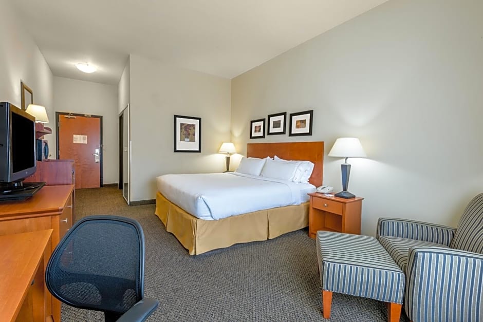 The Holiday Inn Express Hotel Vernal offers a variety of room types including Standard King Rooms with accessible tubs, Standard King Rooms with disability access, King Rooms, King Suites, Standard Queen Rooms with two Queen beds and communication accessibility, Standard Queen Rooms with two Queen beds and mobility accessible tubs, King Suites with accessible tubs, Queen Rooms with two Queen beds, Standard King Rooms with mobility accessible roll-in showers, and Standard Rooms with Double beds. Smoking is not allowed in any of these rooms. The occupancy ranges from 2 adults and 1 child to 4 adults and 3 children. Bed sizes vary from King to Queen. Some rooms have a room size of 355 sqft.