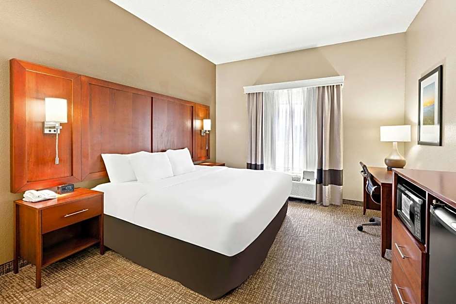 The hotel offers a King Suite with Roll in Shower - Accessible/Non-Smoking, a Queen Room with Two Queen Beds - Non-Smoking, a King Suite - Accessible/Non-Smoking, a King Suite - Non-Smoking, and a King Suite with Hot Tub- Non-Smoking. The sizes of these rooms range from 398 sqft to 474 sqft. Smoking is not allowed in any of these rooms. The rooms can accommodate between 2 to 5 adults and 1 to 4 children, and the beds provided are either King size or Queen size, with some rooms having a sofa bed.