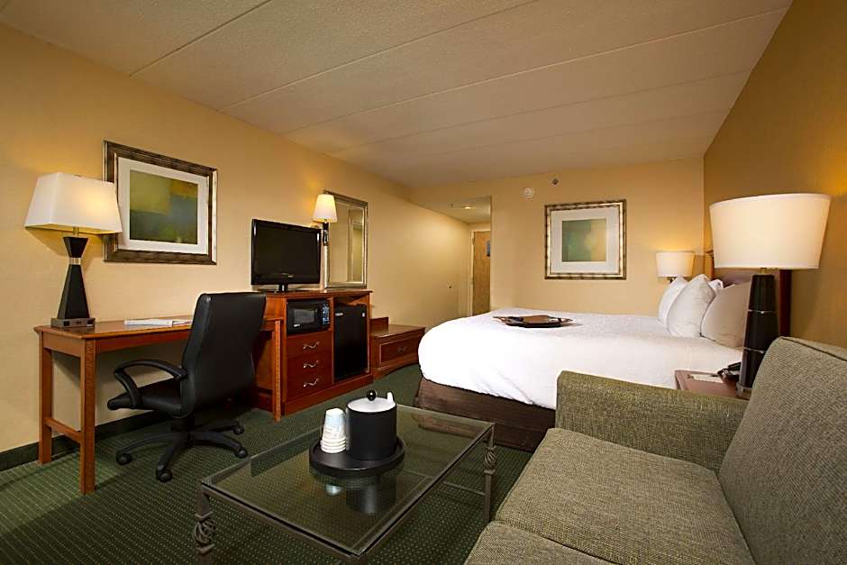 The Hampton Inn Alexandria offers a variety of room types, including a King Room with disability access, a Double Room, and a King Room with a sofa bed. Smoking is not allowed in any of the rooms. The King Room with disability access accommodates 2 adults and 1 child, while both the Double Room and King Room with Sofa Bed accommodate 4 adults and 3 children. The rooms feature either 1 king size bed or 2 double beds, with the King Room with Sofa Bed also featuring a sofa bed.