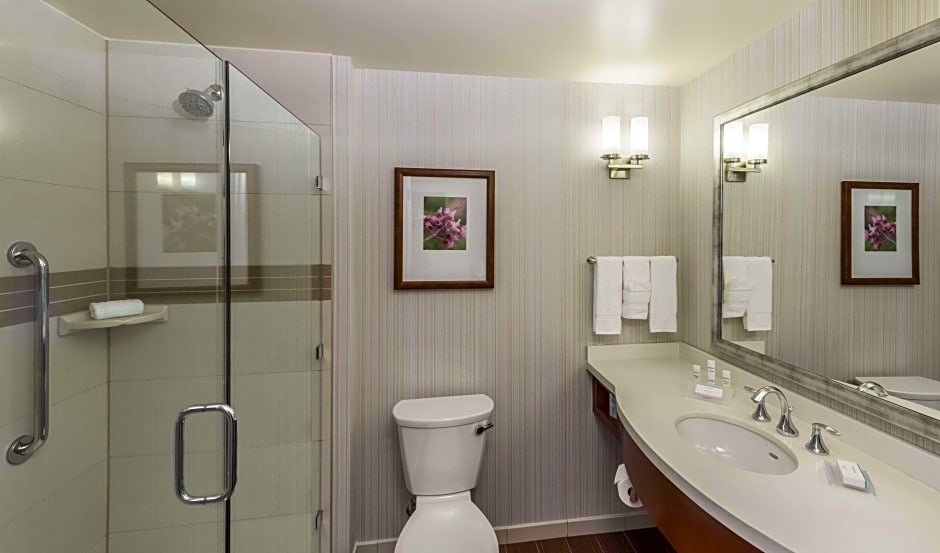This hearing accessible room features one king-sized bed, a visual alarm, and notification devices for the doorbell or door knock and incoming telephone calls. This room has a panoramic view. The ergonomic Mirra chair by Herman Miller is good for your back and better for work. Enjoy an in-room movie or your favorite television show on our 37-inch HDTV. There's also a microwave, refrigerator and coffee/tea maker to help you feel at home. Any corresponding photo may not reflect the specific accessible room type or room feature.