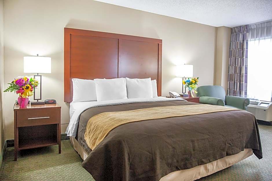 The Comfort Inn Pentagon City offers various room types including King Rooms, Queen Rooms with Two Queen Beds, and Double Rooms with Two Double Beds. These rooms are non-smoking and have a room size of 205 sqft. The King Rooms accommodate 2 adults and 1 child with a King size bed, while the Queen Rooms and Double Rooms accommodate 4 adults and 3 children with 2 Queen size beds or 2 Double beds respectively. Some of the rooms are also accessible, featuring roll-in showers or tubs.