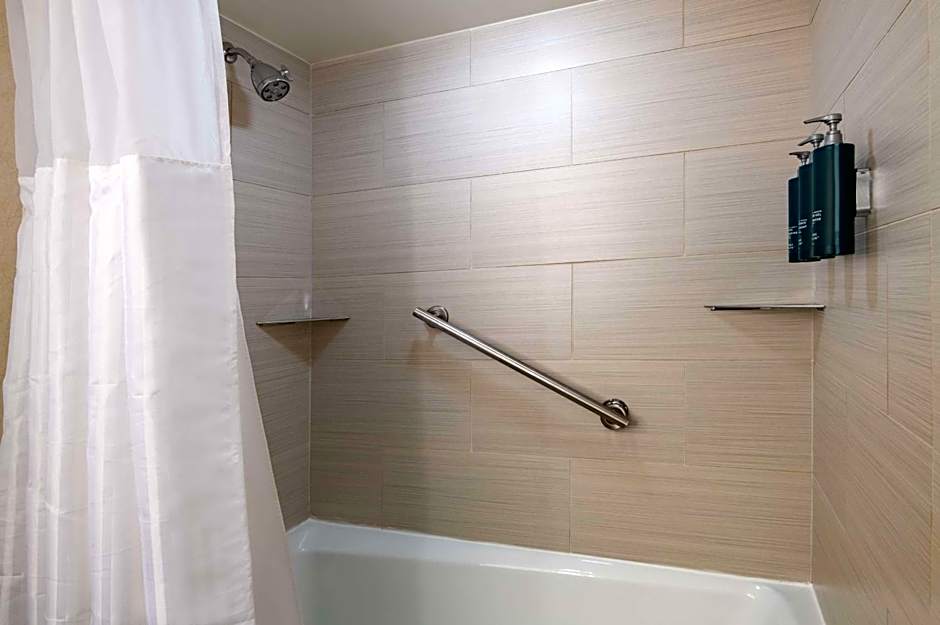 This accessible room with a roll-in shower has 1 king bed. A microwave, small refrigerator and flat-screen TV with cable channels are provided.