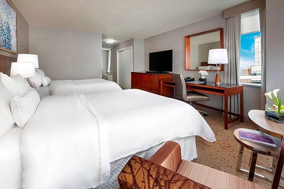 The Westin Arlington offers a variety of room types, including King Rooms with City View and King Rooms with City View - Hearing Accessible. The hotel also has Double Rooms with Two Double Beds and City View - Hearing Accessible. Bed sizes range from King size beds to Double beds. Room sizes range from 205 sqft to 517 sqft. Smoking is not allowed in any of the rooms. The rooms can accommodate 2-4 adults and 1-3 children.