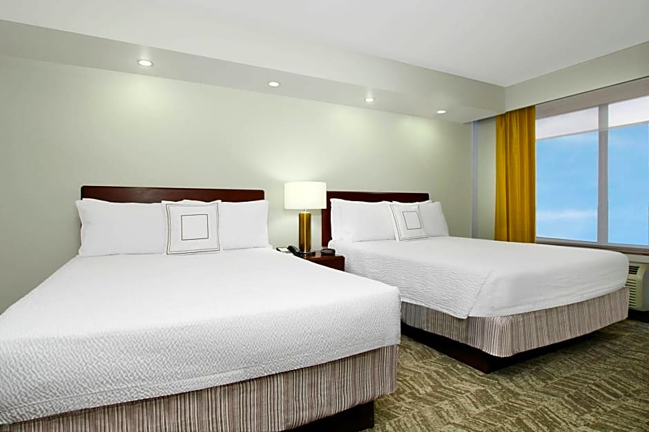 The SpringHill Suites Chesapeake Greenbrier offers rooms in three different types: Studio, Suite with 2 Double Beds, and Suite with 1 King Bed. All rooms have a living space and include a microwave and mini fridge. Smoking is not allowed in any of the rooms. The Studio and the Suite with 2 Double Beds can accommodate 5 adults and 4 children, while the Suite with 1 King Bed can accommodate 4 adults and 3 children.