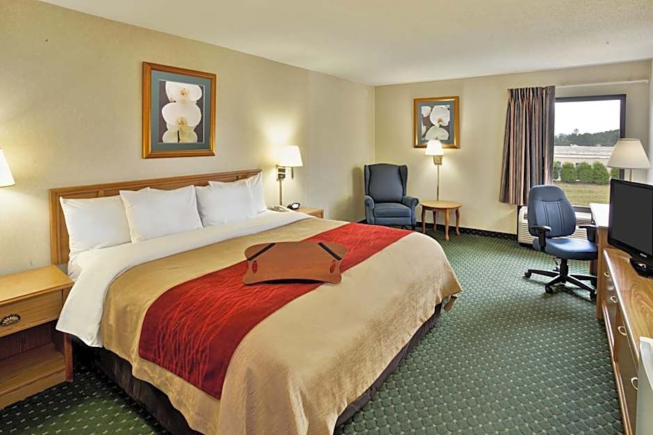 The Comfort Inn Chester - Richmond South offers various types of rooms including King Suites, King Rooms, and Double Rooms with Two Double Beds. They have both accessible and non-smoking options available. The rooms can accommodate a range of guests including adults and children. The bed sizes vary with options for king-size beds, double beds, and sofa beds. The room sizes also vary, with some rooms measuring 355 sqft and others measuring 301 sqft.