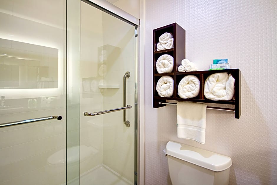 The room was spacious & clean and I really like the cleanliness & brightness of the bathroom. The variety for breakfast was good with hot items (scrambled eggs, sausage, oatmeal), bagels, muffins, cinnamon rolls, fruit & cereal. We were there for Virginia Tech graduation and they had a really nice banner congratulating graduates and welcoming families in the lobby. That's such a nice touch and very appreciated!