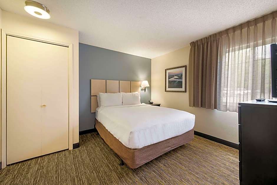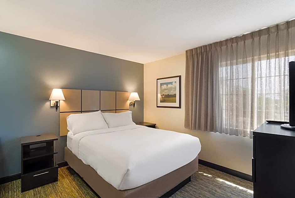 Excellent friendly staff, accessible and very accommodating. Free washers and dryers and a workout room is a plus. The location is a short drive to stores and restaurants as well as the highway, but just far enough to be away from any traffic. Rooms are clean, with a full size refrigerator, TV and microwave, as well as a cook top and dishwasher. A toaster and coffee machine was also included. The bathroom was clean. The bedding was comfortable, and the lounge chair and a table with chairs for eating meals was a plus. This is a perfect setup for an extended stay or a good weekend.