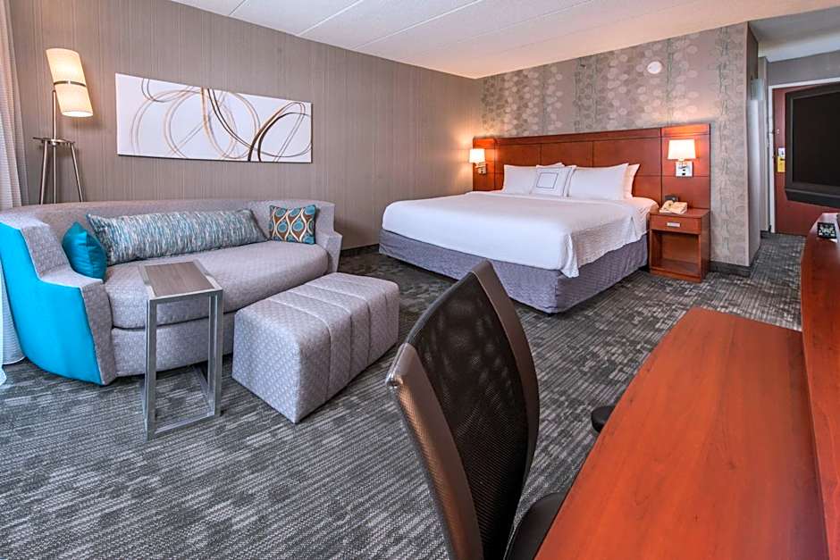 What types of rooms does Courtyard by Marriott Fairfax Fair Oaks offer?