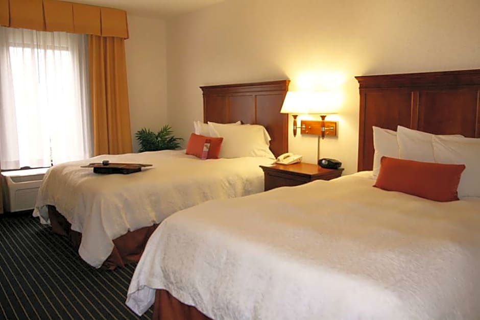 Work area, free WiFi, tea/coffeemaker Have a relaxing stay in this queen room that features 2 clean and fresh Hampton beds®. Watch your favorite show on TV and enjoy a delicious hot drink from the in-room tea/coffeemaker. This room includes a spacious work desk and free WiFi to let you catch up on work while traveling. In the bathroom you'll enjoy fluffy towels, a WaterPik® showerhead and curved shower rod for added space and light.