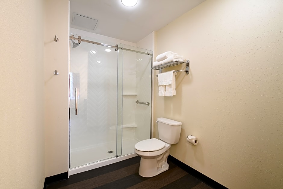 This hotel is very nice. Beautiful and clean entrance. My room was so spacious and perfect for just myself. And I would have been just as comfortable with another person or even two. The sofa serves as another spot to rest and it comes with a trundle for another person. The bathrooms are a bit on the smaller size but still clean, beautifully laid out and functional. There is also a nook for the microwave and mini fridge. The room has carpet where you sleep and Harwood where you enter. I really liked that distinction. There's also an area for you to lay out your suitcase and for you to hang your coats or purses. It resemebles something like you would see in a mud room . Hooks and a bench. Very convenient. Loved my stay here and I ended up extending my trip and staying an extra night.