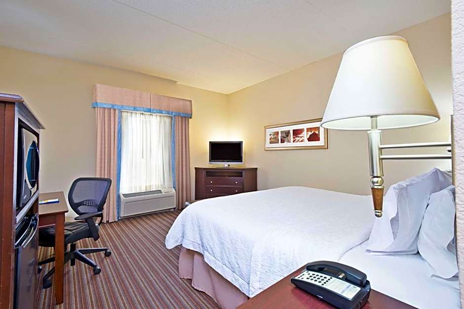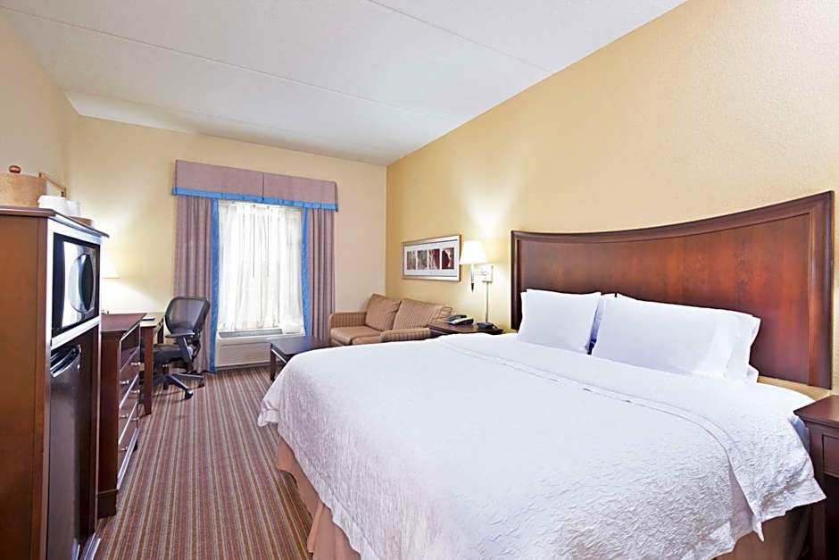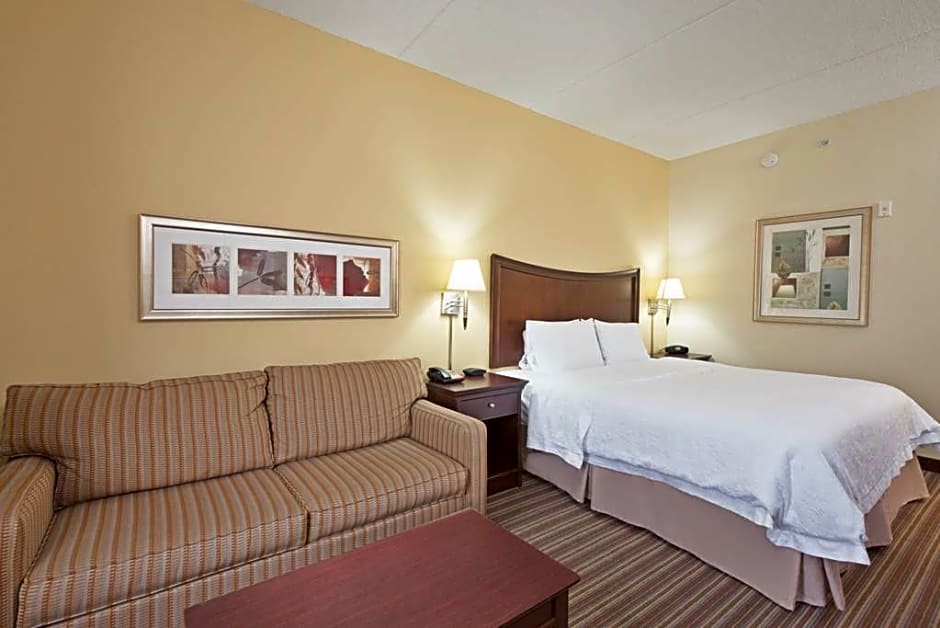 Sofa bed, desk, ergonomic chair, microwave, mini-refrigerator, free WiFi, 32-inch LCD HDTV. Settle in to this spacious non-smoking guest room, featuring a comfortable king-sized bed and sofa bed. Surf the web with our free WiFi access, or use it to get some work done in comfort at the large desk with ergonomic chair. Prepare a meal in the small kitchen area, equipped with a microwave and mini-refrigerator. Stretch out on the sofa and watch premium HD channels on the 32-inch flat-screen TV. Enjoy a peaceful night's sleep in the clean and fresh Hampton bed®. Other amenities in this room include weekday newspaper delivery, fluffy towels, and a coffee machine.