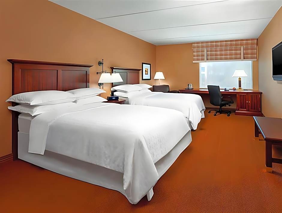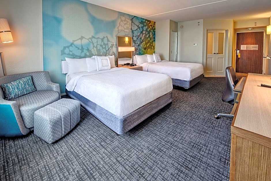The Courtyard by Marriott Dulles Airport Herndon offers a variety of room types including family rooms with two queen beds, triple rooms with a king bed and sofa bed, and double rooms with a king bed. These rooms range in size from 183 to 248 square feet and do not allow smoking. The rooms can accommodate between 3 and 4 adults and 2 to 3 children.