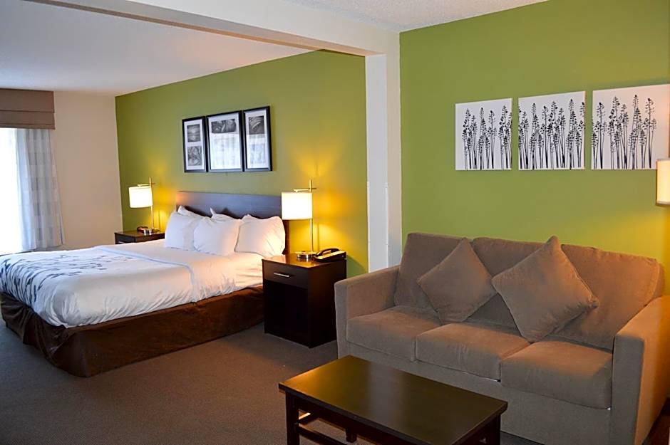 What types of rooms does Sleep Inn & Suites Virginia Horse Center offer?