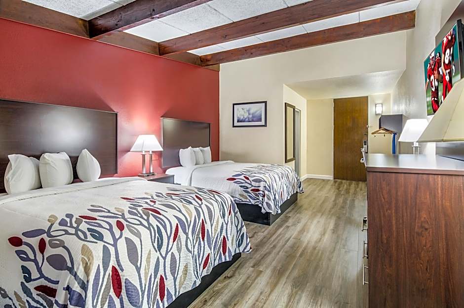 The Red Roof Inn Madison Heights, VA offers a variety of superior rooms with different bed configurations. They have rooms with two queen beds that can accommodate up to 4 adults and 3 children, as well as rooms with a king-size bed that can accommodate 2 adults and 1 child. All rooms are non-smoking and have a room size of 280 sqft. Some rooms also have disability access and roll-in showers.