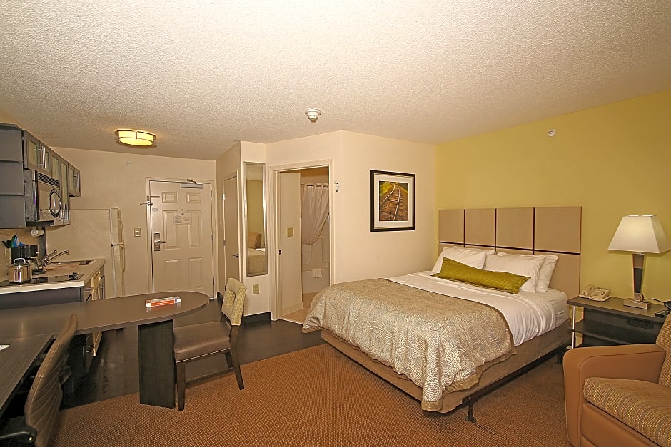 1 Qn Bed Studio Suite Mobil Access Tub is 269 square feet and includes a queen-size bed 150-154 width.