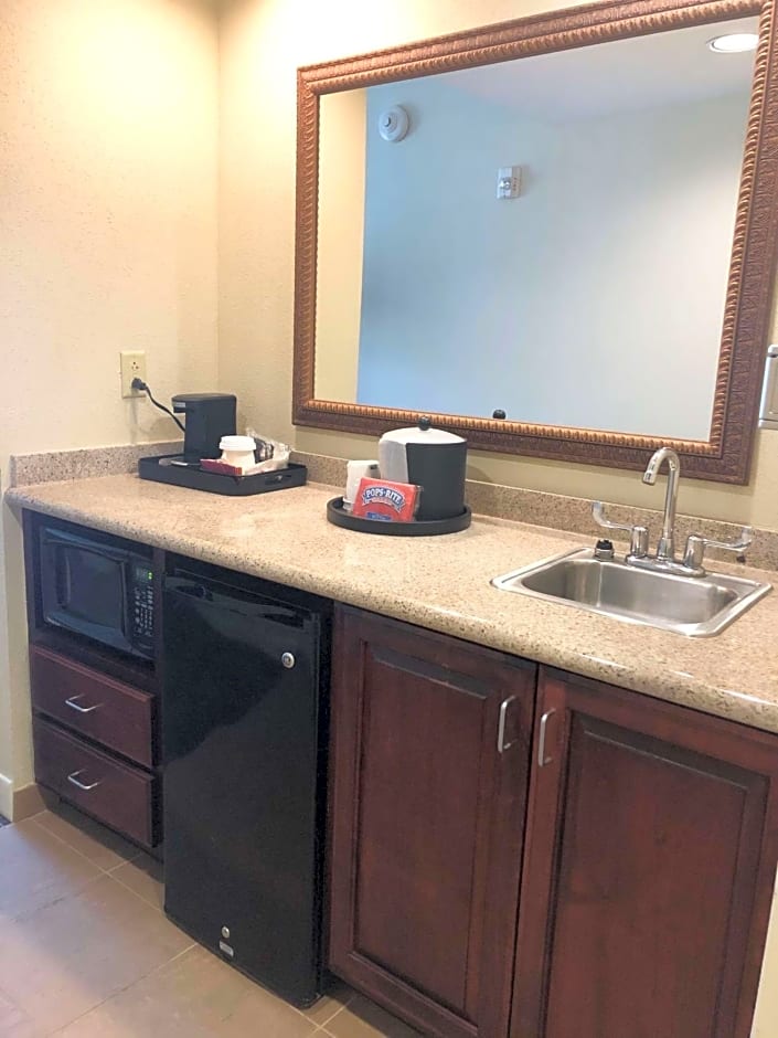 LCD HDTV, work space, coffeemaker, free WiFi, mini-refrigerator Experience comfort and space in this studio suite which features a clean and fresh Hampton bed®, a work space and an LCD TV with HD channels. Work in comfort at the large desk area and stay connected with free WiFi. The bathroom offers soft towels and a shower with a curved shower rod for added space and light when showering. A handy mini-refrigerator and a coffeemaker are included for your convenience.