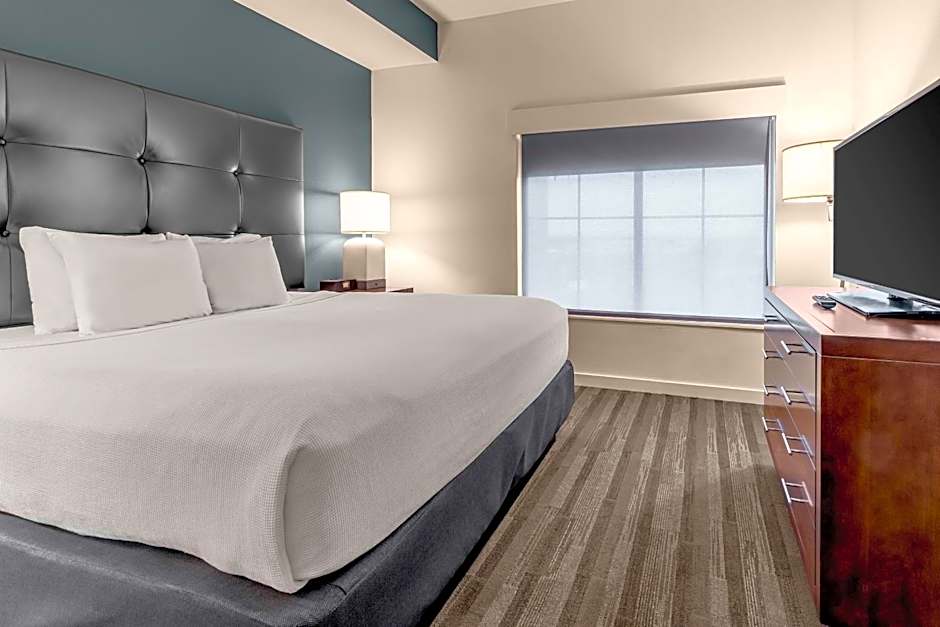 The hotel offers King Studios with Sofa Bed and King Studios with Accessible Tub, both accommodating up to 4 adults and 3 children. There is also a Queen Room with Two Queen Beds and a One-Bedroom King Suite, both accommodating up to 4 adults and 3 children. None of the rooms allow smoking. The bed sizes range from King to Queen, with some rooms also offering a sofa bed.