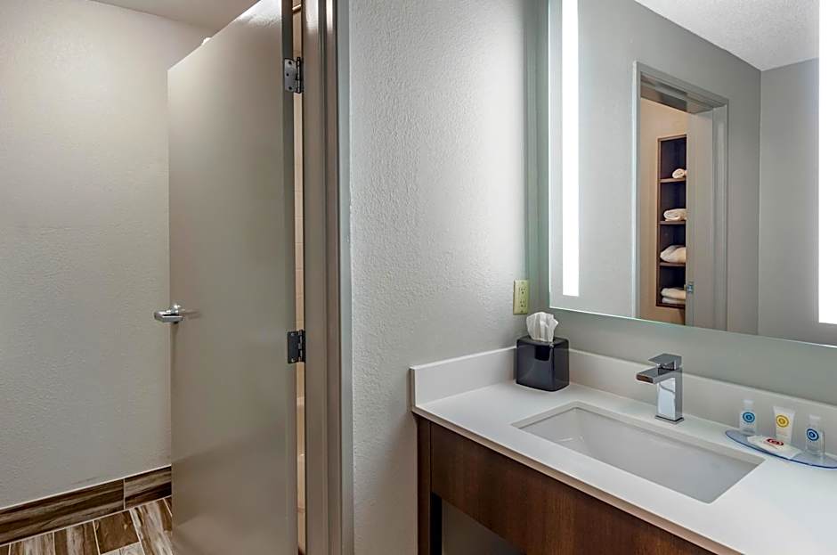 The room was spacious and clean, equipped with a decent size bar fridge, microwave oven and 2 luggage racks. It is a bonus that the wash basin is separate from the bathroom. The hotel is conveniently located close to the I-81, and although it is so close, the traffic did not bother us. Breakfast was basic, but good.