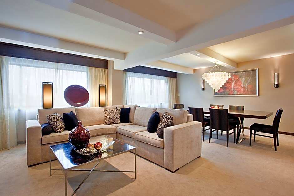 Dining on-site leans toward a family-friendly, traditional vibe, with Ashley's Bistro and Lounge offering American fare. When Ashley's is closed for renovations through April, meals can be ordered via Blu Bar for convenient in-hotel dining. Kid-friendly touches shine here, including a kid-friendly buffet and Kids' meals free to please younger travelers.