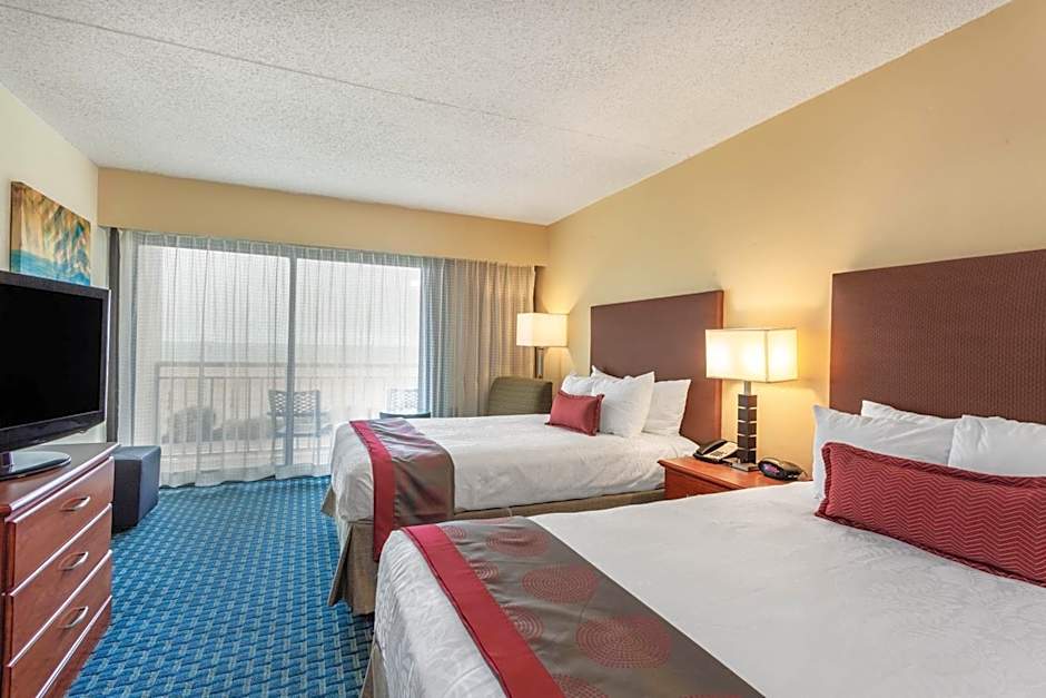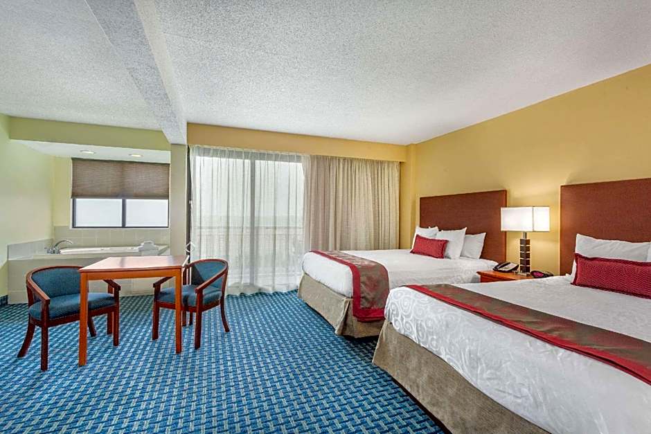 The Ramada Plaza by Wyndham Virginia Beach offers various types of rooms, including double rooms with two double beds and ocean view, king rooms with ocean view, and mobility accessible rooms with ocean view. All rooms are non-smoking. The double rooms can accommodate up to 5 adults and 4 children, while the king rooms can accommodate up to 3 adults and 2 children. The bed sizes vary from double beds to queen or king size beds.