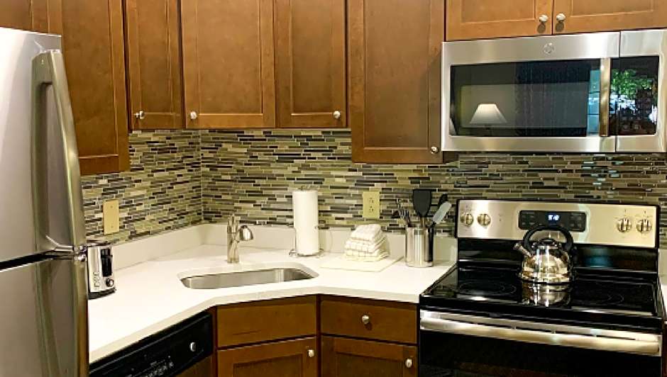 During the first evening, a wet spot formed on the ceiling of the room with the queen-size bed. We called the front desk, and in the morning, they promptly sent maintenance out to check the situation. Not sure what caused it (it has been a rainy summer?), but they went to check with the guests staying in the unit above ours. Maintenance also addressed some very dim and missing light bulbs in our unit. Very quick and helpful, thank you! We noticed that while there was plenty of spoons and butter knives in the utensil drawer, there was only 6 forks total (3 regular forks, 3 dessert forks). Not really a complaint, but we wondered why there were fewer forks in the drawer.