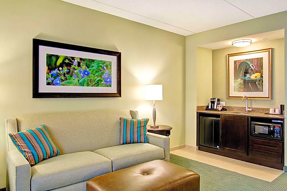 The Hilton Garden Inn Woodbridge offers a variety of room types including King Rooms, Junior King Suites, One-Bedroom King Suites, Queen Rooms with Two Queen Beds, and Two Queen Rooms with Mobility/Hearing Accessibility. All rooms are non-smoking and can accommodate multiple adults and children. Bed sizes range from King size beds to Queen size beds, and some rooms also include a sofa bed.