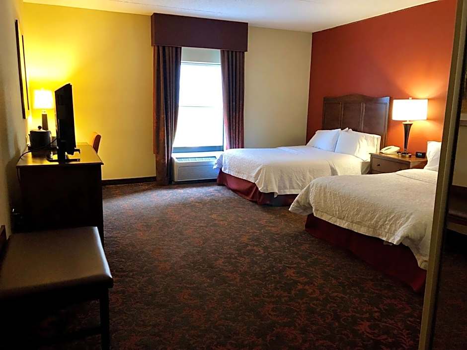 The Hampton Inn and Suites Woodstock, Virginia offers a variety of rooms including Non-Smoking King Studio Suites, King Rooms, Queen Rooms with Two Queen Beds (including disability access options), King Studio Suites with Whirlpool, and Non-Smoking 2 Queen Studio Suites. The rooms can accommodate different numbers of adults and children, ranging from triple occupancy to quadruple occupancy. The rooms have either king or queen size beds, and some also include a sofa bed.
