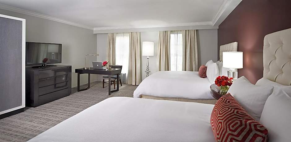 The Graham Georgetown hotel offers a variety of rooms including suites, king corner rooms, queen rooms with two queen beds, a two-bedroom villa, and king studio suites. All rooms are non-smoking and range in size from 312 sqft to 2400 sqft. Occupancy varies, accommodating between 3 to 5 adults and up to 2 children. Bed sizes include king, queen, and sofa beds.