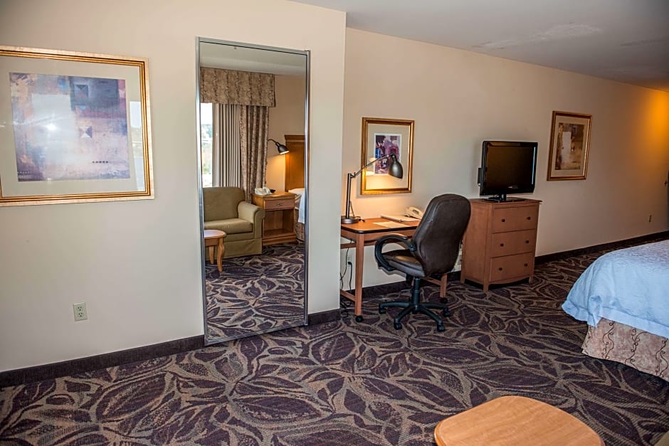 The Hampton Inn & Suites Bremerton offers various room types including King Rooms, Studio Suites, King Suites with Spa Bath, Deluxe King Rooms, Queen Rooms with Two Queen Beds, and One Bedroom Suites with King beds. All rooms are non-smoking and can accommodate 2 adults and 1 child, except for the Queen Rooms which can accommodate up to 4 adults and 3 children. The room sizes range from 226 sqft to 355 sqft.