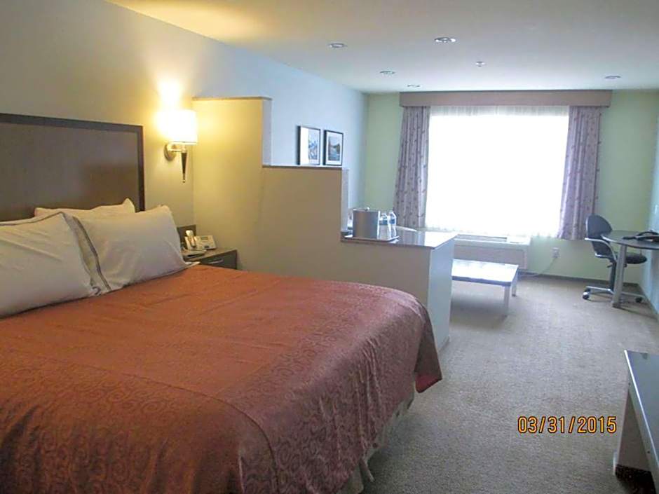 Excellent location, close to Safeway, gas station. Staff is friendly and helpful. Hot breakfast was very good, there were links, potatoes, kids enjoyed the variety of cereals. Room had a love couch and a mini fridge, and shower was good.