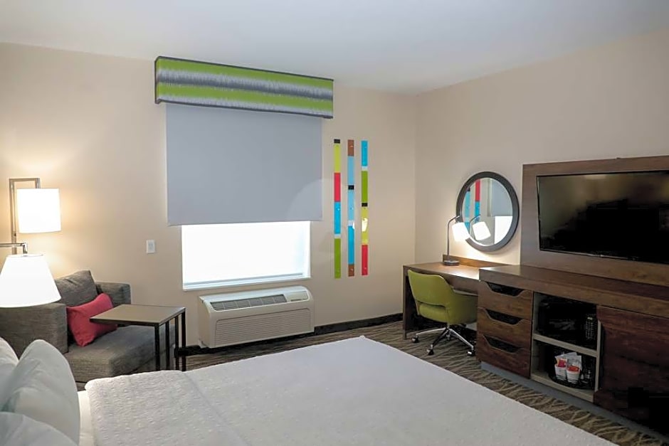 This mobility accessible, non-smoking room features one king-sized bed, and an accessible bathtub with a curved shower rod that allows more light and space in the shower. The room features comfortable soft seating, microwave, refrigerator, a HDTV, and easy to operate alarm clock/radio. The free WiFi access will help you stay connected while on the road. If you prefer not to work at the desk, you can use the convenient lapdesk instead. You'll also enjoy the convenience of having a coffeemaker with tea service and iron/ironing board in your room. Any corresponding photo may not reflect the specific accessible room type or room feature.