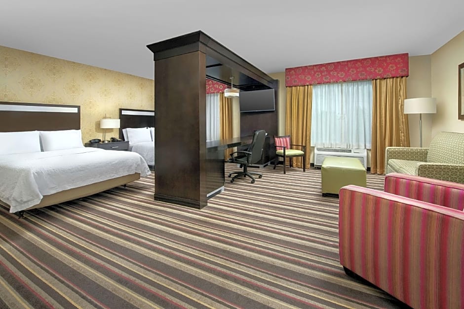 The Hampton Inn & Suites Seattle/Federal Way offers a variety of room options. These include King Studio Suites, King Rooms with Sofa Beds, Queen Rooms with Two Queen Beds, King Bed Accessible Rooms with Tubs, King Rooms, King Rooms with Hearing Accessibility, and Two Queen Bed Studio Suites. The rooms range in occupancy from double to quadruple, with some rooms accommodating up to 5 adults and 4 children. Smoking is not allowed in any of the rooms. Bed sizes include King and Queen beds, with some rooms also featuring sofa beds.